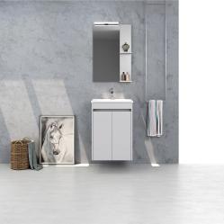 ΠΕΡΙΓΡΑΦΗ ΕΠΙΠΛΟΥ ΦΩΤΟΓΡΑΦΙΑΣ Βάση Λάκα+Νιπτήρας │ Καθρέπτης Λάκα │ Φωτιστικό 4501   ΕΝΑΛΛΑΚΤΙΚΑ ΥΛΙΚΑ Βάση Μελαμ.+Νιπτήρας │ Καθρέπτης Μελαμ.   ΠΡΟΔΙΑΓΡΑΦΕΣ ΚΑΤΗΓΟΡΙΑΣ SMILE Κατασκευασμένα από MDF ανθυγρό σε αποχρώσεις RAL και 12 χρώματα Μελαμίνης. Δυνατότητα τοποθέτησης επικαθήμενου νιπτήρα στα έπιπλα SMILE σε επιφάνεια από: Μελαμίνη 18mm │ Κον/κε Θαλάσσης Λάκα 18mm │ Τεχνογρανίτης 20mm │Κρύσταλλο 12mm σε αποχρώσεις RAL │ Υαλομάρμαρο Λευκό 12mm