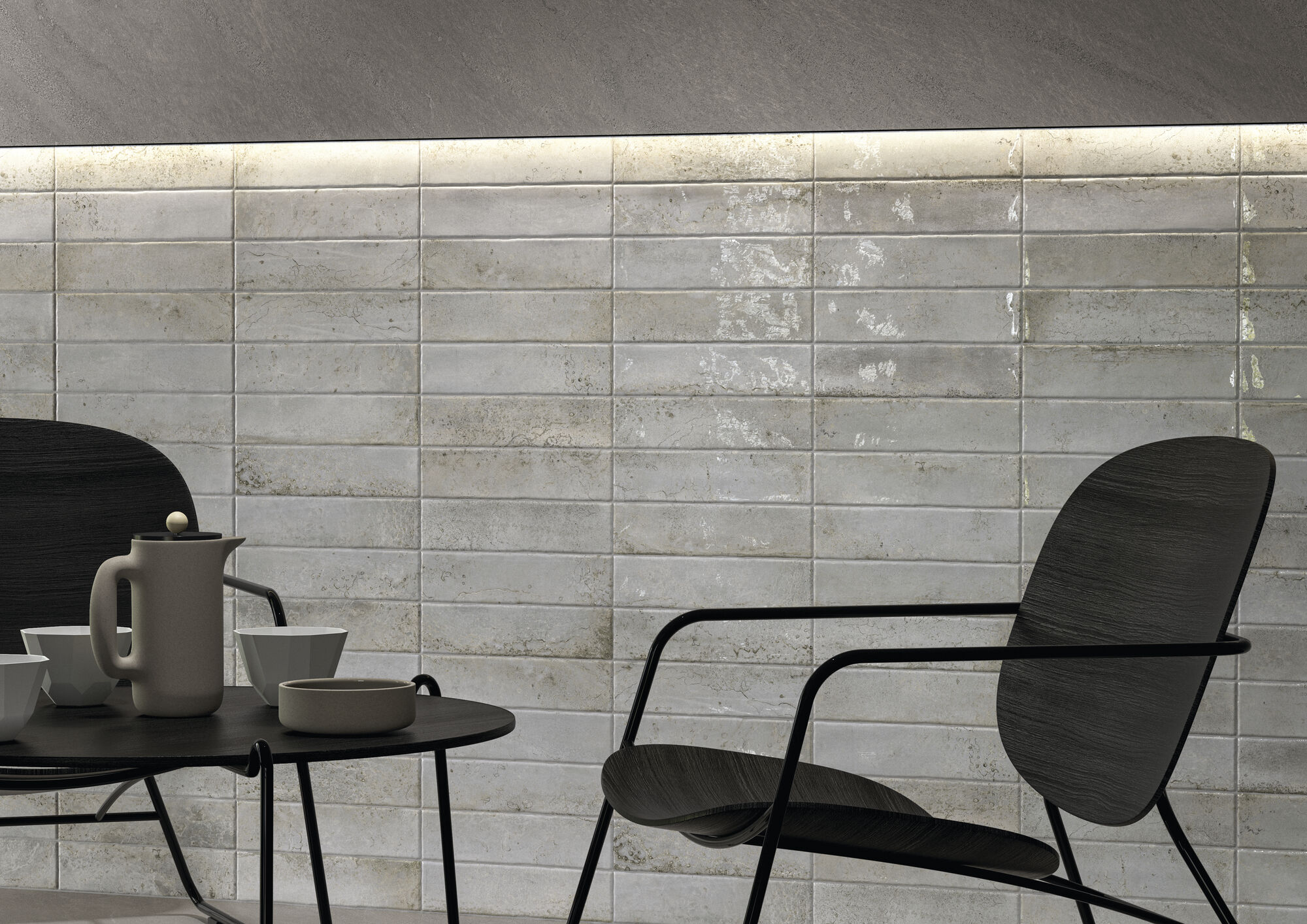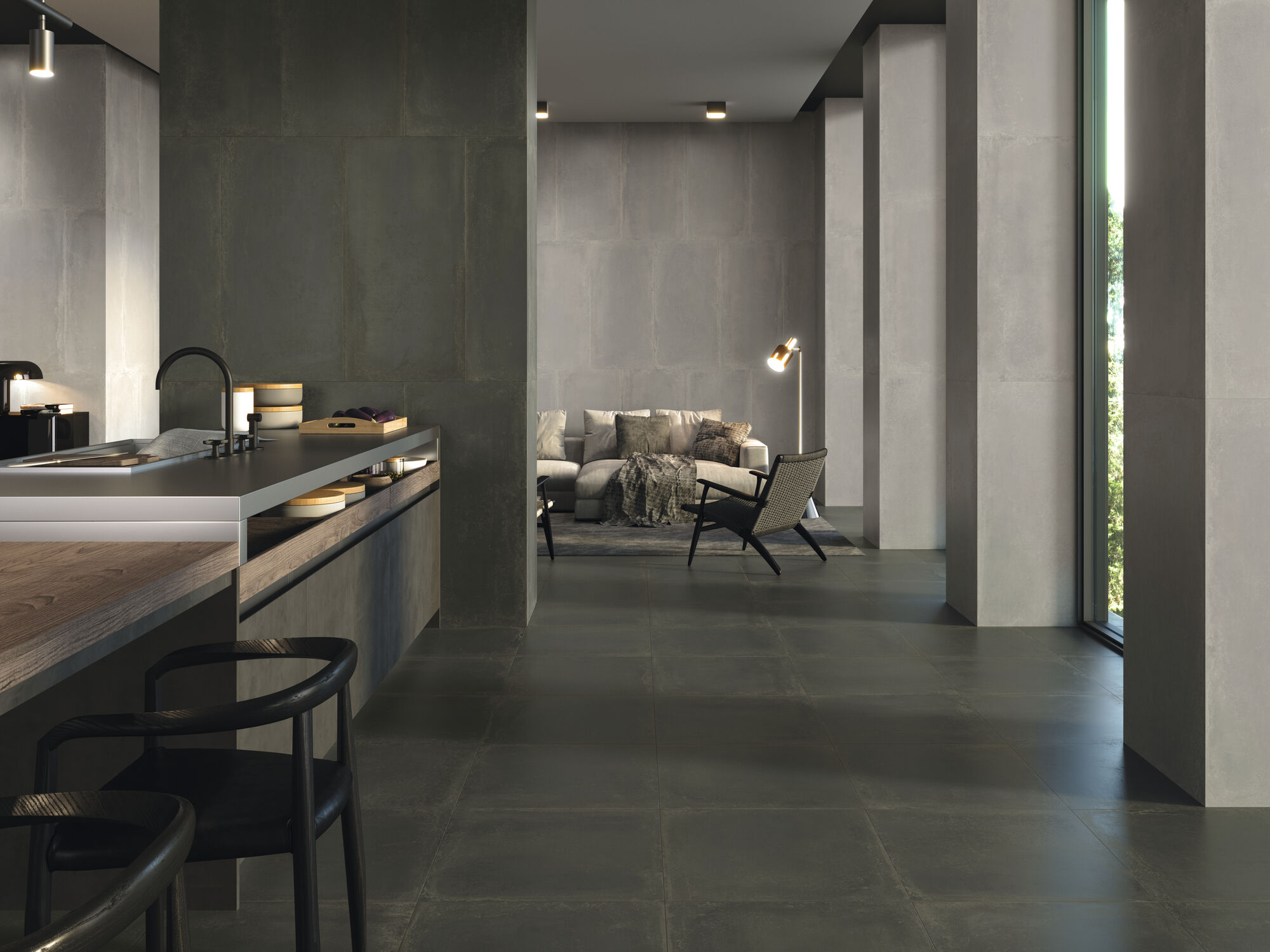 Industrial is a large-format porcelain tile which matches and fits in with virtually any style thanks to its contemporary look. This series is part of the XLife collection, where large-format ceramics create large and small spaces of great visual impact. Large-format ceramic slab tiles are combined with smaller pieces to create surprising interiors where the passage of time is only an added value. This results in a range of four different formats available in two different shades to make exciting projects a reality.