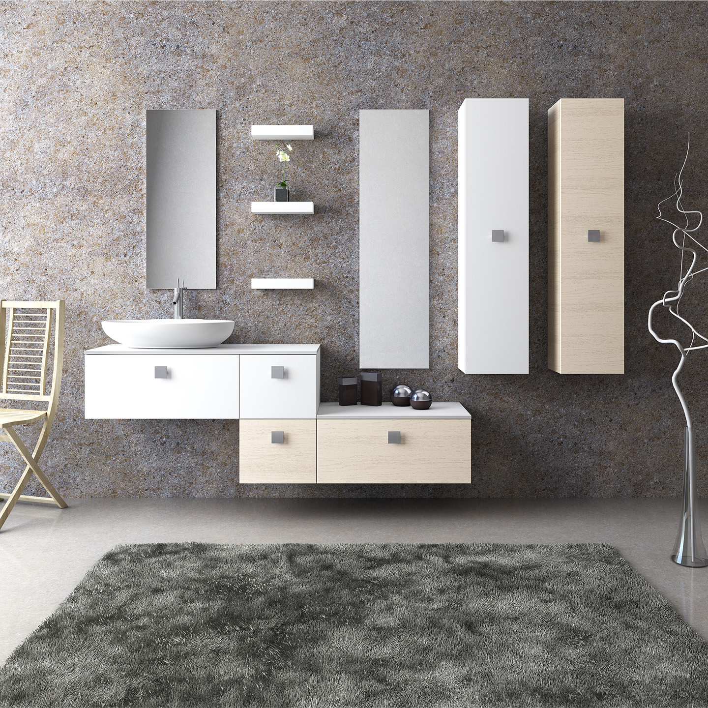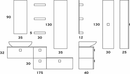 Βάση │ Καπάκι Υαλομάρμαρο Νιπτήρα │ Νιπτήρας FUORI 3 │ Καπάκι Υαλομάρμαρο Πλαϊνό │ Καθρέπτης Νιπτήρα │ Καθρέπτης Πλαϊνός │ Εταζέρα TETRIS (3 τεμ.) │ Στήλη TETRIS