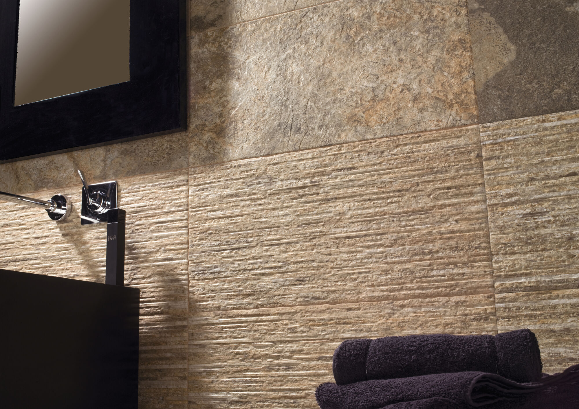 Arcata is a collection whose calling card is its natural intensity. The natural shades of the stone give shape to sober and special atmospheres that transport us to the most remote places in the world. The imitation stone tiles in this series come in two beige and earth tones and a piece decorated with reliefs which, in combination with other elements, allow for the outlining of rich, natural and authentic spaces.